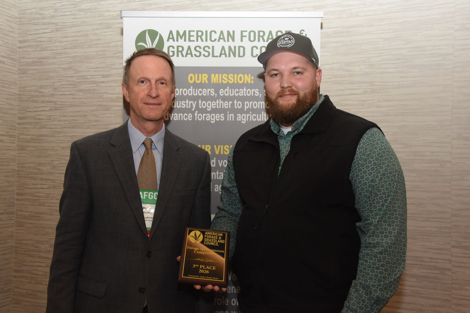 The Forage Spokesperson Contest is one of the most popular and informative sessions at the annual AFGC conference. Individual farmers are nominated by state affiliate councils to present at the national conference. Each producer is asked to develop a 15-minute presentation which gives an overview of their farming operation. Emphasis is typically placed upon how forage management contributes to the overall farm objectives and marketing. An additional five minutes are then reserved for questions from judges and the audience. A diverse panel of judges comprised of producers, industry representatives and government agency employees score the producers on criteria including innovativeness, practical application of sound principles, communication skill and enthusiasm. We request that no video be used in the presentation as this impedes our ability to record the presentation.